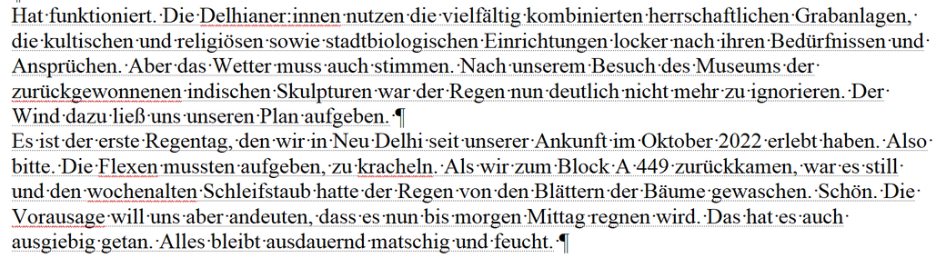 Es ist erst der erste Regentag, den wir in Neu Delhi seit unserer Ankunft im Oktober 2022 erlebt haben. Also bitte.