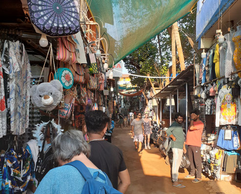 Wir waren heute Nachmittag in Arambol shoppen. Fast hätten wir es aufgegeben. Aber dann haben wir uns doch aufgerafft. Ein Taxifahrer, der uns ins Shopping-Center fahren sollte, wollte es wirklich wissen und verlangte 400 INR. Wir haben ihn bei 300 gekriegt. Saftig fanden wir - 6 km betonte er.