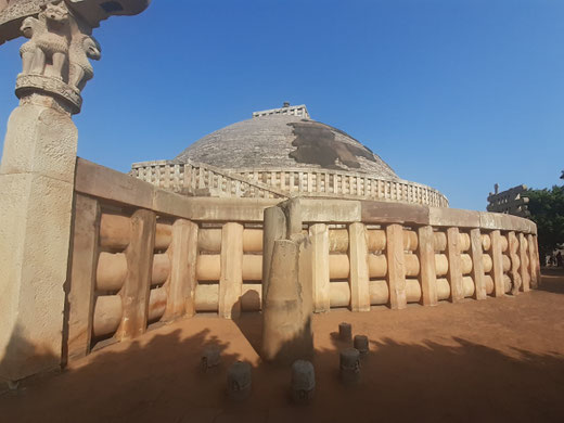 Der Kern des Stupa wurde während der Regierungszeit des Kaisers Ashoka aus der Maurya-Dynastie im 3. Jahrhundert v. Chr. erbaut und ist eines der bemerkenswertesten buddhistischen Denkmäler des Landes. Mittlerweile ist es UNESCO Weltkulturerbe. Die gigantische Kuppel des Stupa enthält ein zentrales Gewölbe, in dem Reliquien von Lord Buddha platziert wurden. Gekrönt wurde der Stupa von einem sonnenschirmähnlichen Gebilde, das den hohen Rang symbolisierte und die Reliquien ehren und schützen sollten. Im 1. Jahrhundert v. Chr. wurden vier aus Stein gearbeitete, mit ornamentalem Schmuck übersäte Tore und eine Balustrade hinzugefügt, die das architektonische Gebilde umgibt. Sehr beeindruckend.