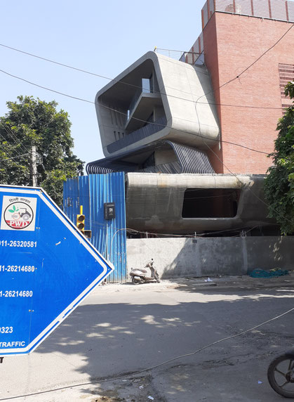 Wir nahmen an einer Führung durchs IIC buildings, an einem zweistündigem Dauervortrag über einen Joseph A. Stein einer indischen Historikerin mit Message teil, leider viel an sonnigen, draußen gelegenen Stellen. Herr Stein designte auch das anliegende UN-Gebäude. ER war Amerikaner und kam mit seiner Frau Margaret, die – typischerweise für die Zeit – Innenarchitektin war, 1952 nach Indien. Er baute (zusammen mit ihr? aber das war nicht das zentrale Thema und zu Margaret Stein findet sich auch kein einschlägiger Wikipedia-Artikel… wie auch sonst generell weniger über Frauen Artikel in Wikipedia existieren) in Delhi soviel, dass die Ecke auch „Steinerabad“ genannt wird. Das Gebäude ist schön, aber die Führung schlauchte durch die Hitze und durch die Bigband, die im Hintergrund ihren Soundcheck Instrument für Instrument ausführlich absolvierte und die Historikerin leicht übertönte.
