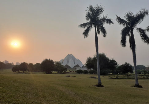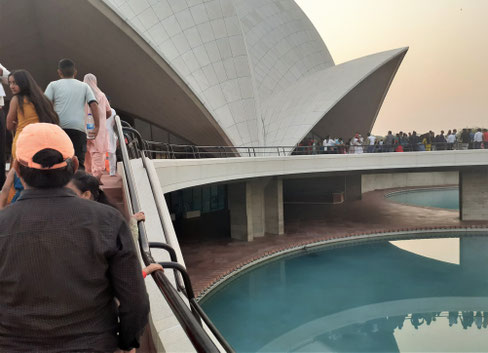 Lotustempel, der Name leitet sich von der Form des Gebäudes ab, das an eine Lotosblume erinnern soll. Das beeindruckende Architektur-Spulptur-Gebäude wurde 1986 eröffnet, ist superberühmt und ist ein herausragendes Beispiel moderner Architektur in Indien. Das Bahaitum ist eine weltweit verbreitete und universale Religion, die von Bahāʾullāh Mitte des 19. Jahrhunderts gegründet wurde. Sie ruft dazu auf, die Erde als „nur ein Land und alle Menschen [als] seine Bürger“ zu betrachten. Schön.
