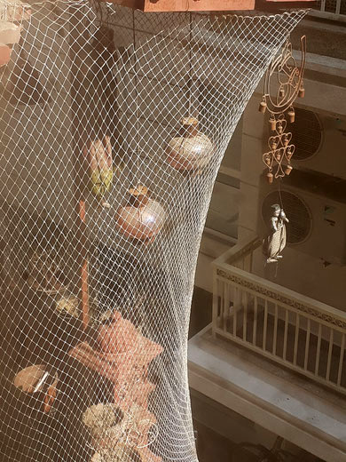 Nach den 4 + 12 Stunden Warten, Starten, Fliegen, Landen, Warten usw... sind wir zum Glück ohne jegliches nervige Fragen nach Corona und Impfungen, Tabak und anderem im Gepäck über Doha in Neu Delhi gelandet. Der Flughafen ist mit Teppich ausgelegt und mit dieser Wandgestaltung quasi auf den ersten Schritt und ersten Blick freundlicher als die beiden davor.